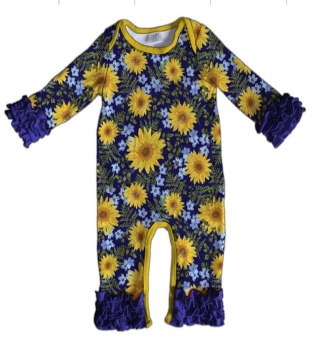 Fall Preorder: Blue Sunflowers Ruffle Romper